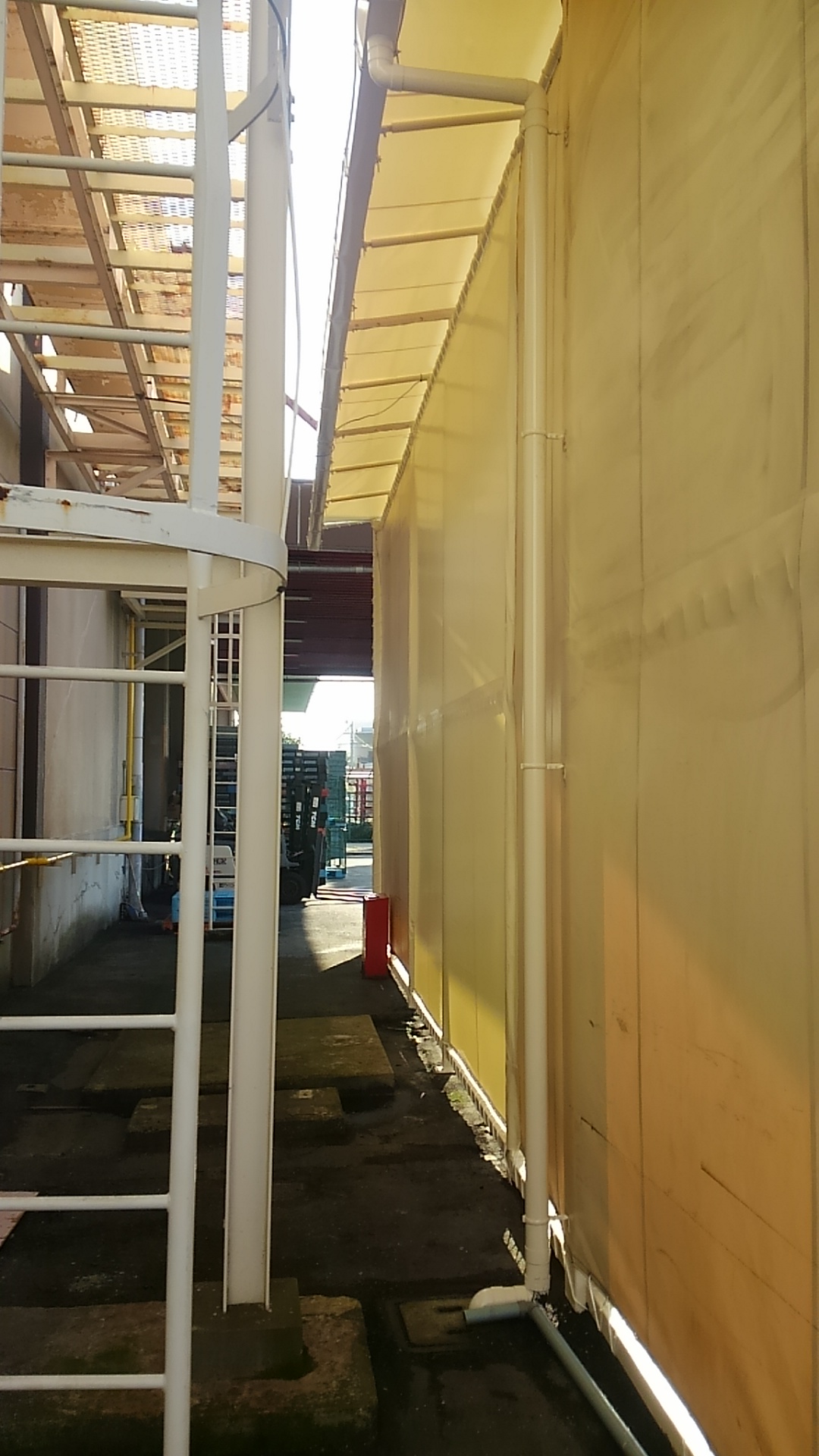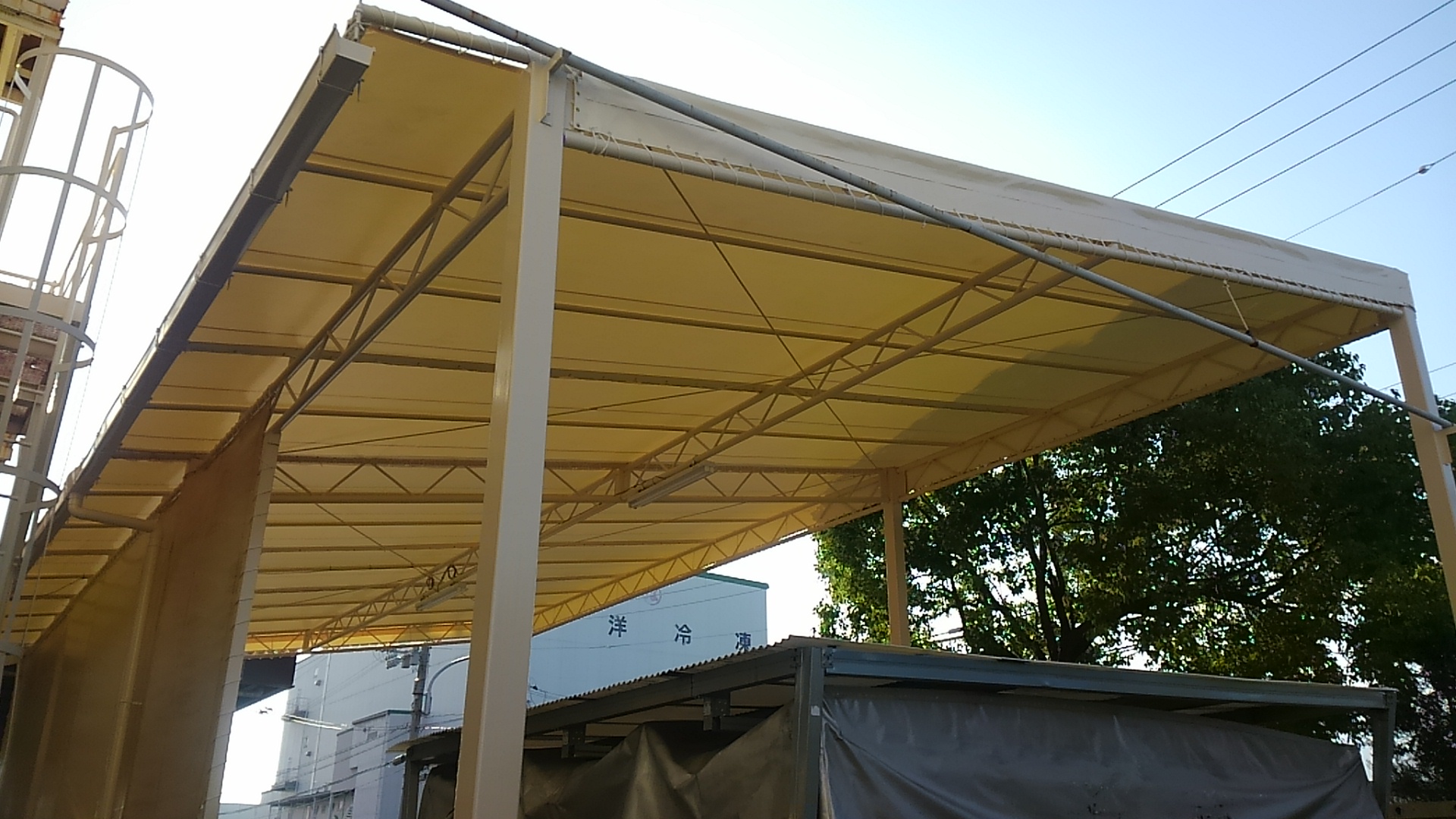 工場の上屋テントのシート張替えを、いつもお世話になっている工務店様にご依頼頂きました。