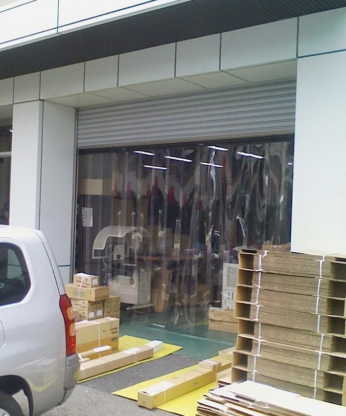 倉庫前の荷捌き場出入り口の間仕切カーテン工事です。